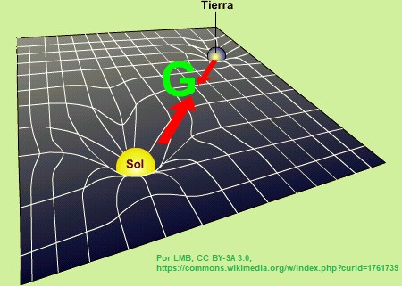 En ese espacio-tiempo que nos proporcionó Einstein la gravedad no se plantea como una fuerza, sino como la consecuencia de la deformación de ese espacio-tiempo. Deformación por la que están obligados todos los seres, objetos o entidades físicos a moverse; voluntariamente, y también involuntariamente. Voluntariamente lo hacen cuando deciden desplazarse por el espacio físico que incluye las 3 dimensiones física. Pero, aunque físicamente estén quietos, involuntariamente se desplazan de forma inexorable por la cuarta dimensión, que, según esta teoría, es el tiempo.